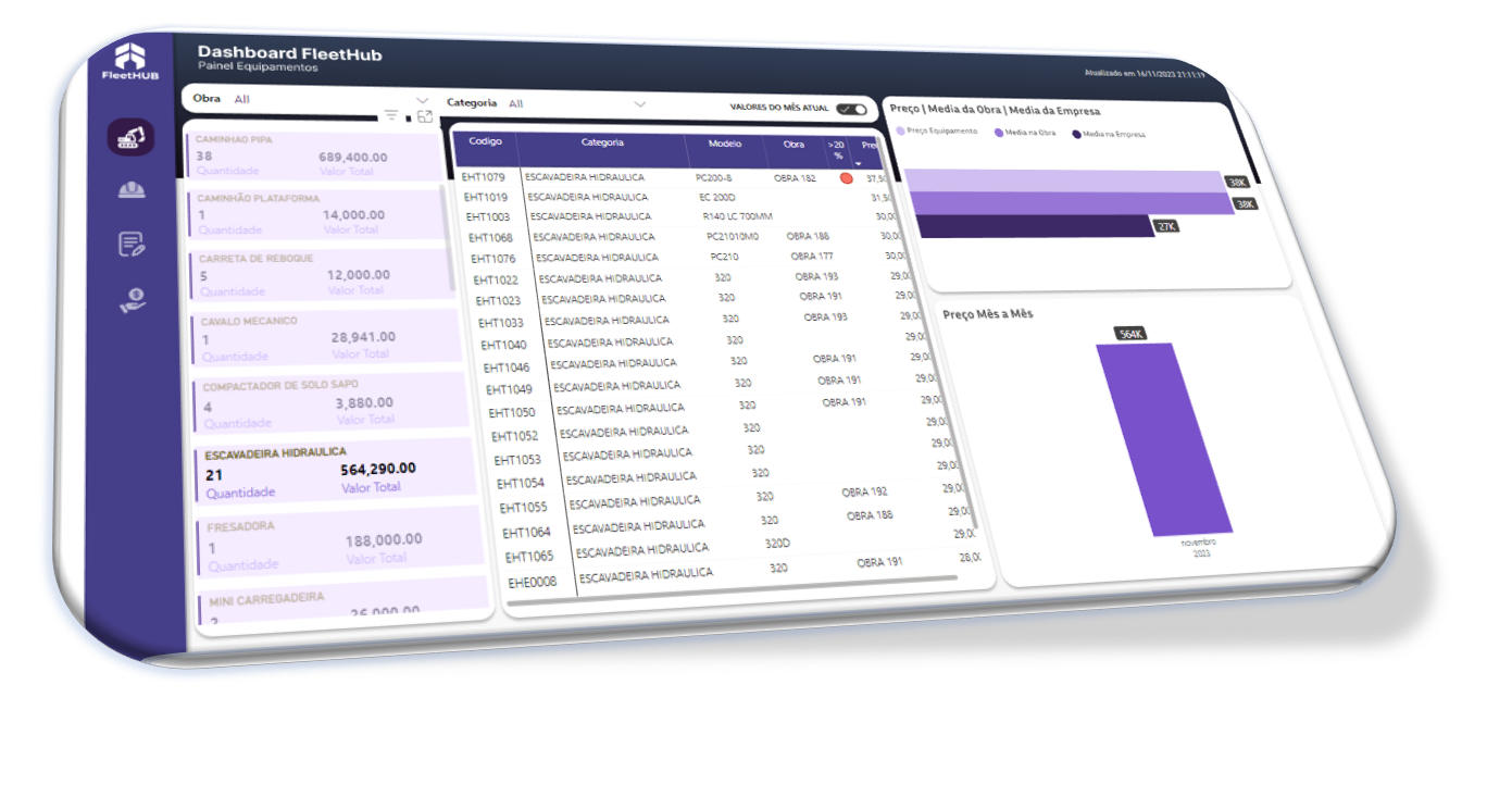 O FleetHUB é um sistema completo de gestão de frotas voltado para construtoras e locadoras de máquinas e equipamentos pesados. Ele permite controlar contratos, manutenções, abastecimentos, localização e produtividade de forma digital, centralizada e em tempo real.